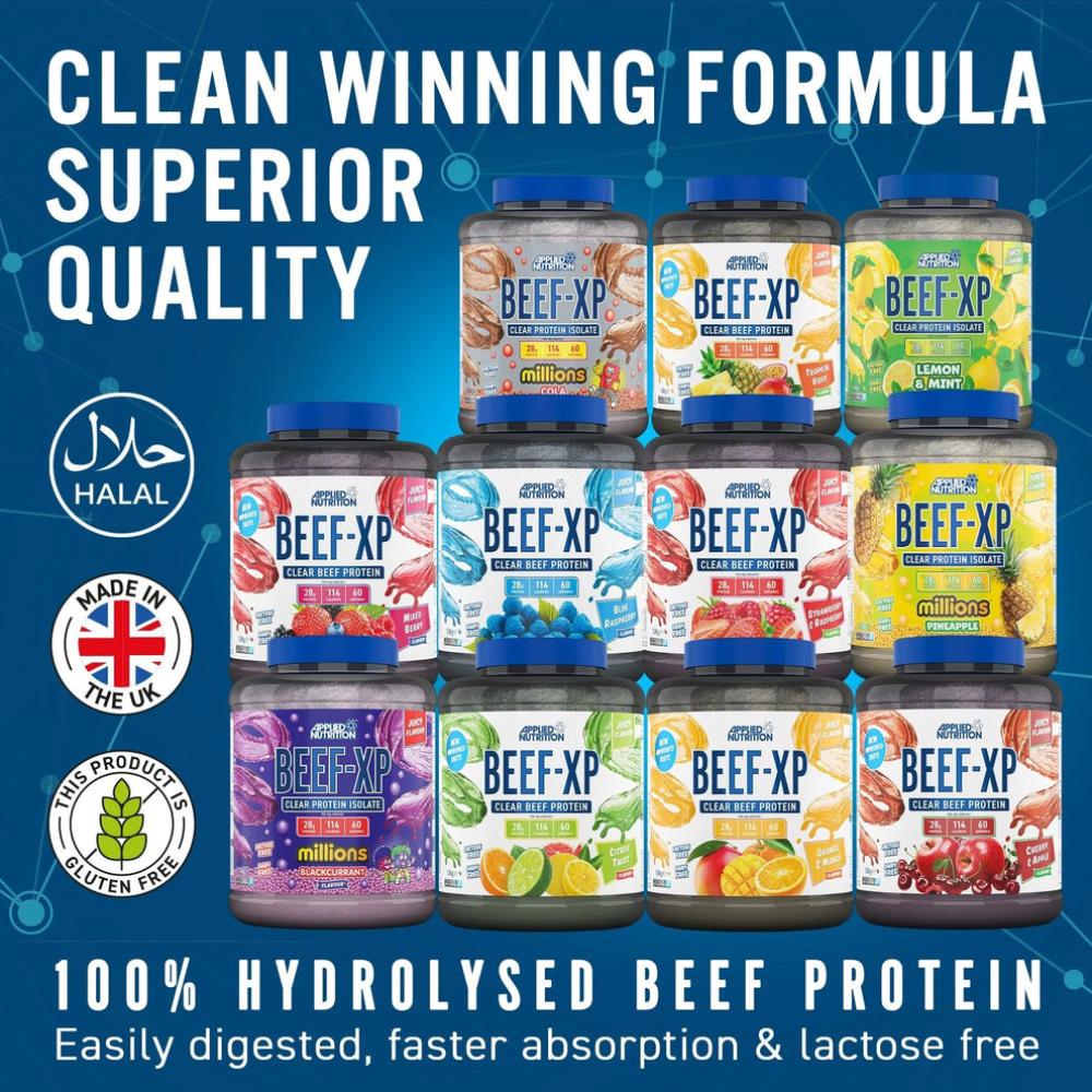 بروتين Beef-XP هو مصدر فريد للبروتين، خالٍ تمامًا من منتجات الألبان، مصنوع من لحم بقري مُحلَّل مائيًا بنسبة 100٪. يقدم أكثر من 27 جرامًا من البروتين لكل وجبة، ويتميز بملف غني من الأحماض الأمينية الأساسية (EAAs)، مما يجعله داعمًا مثاليًا للنمو العضلي والتعافي بعد التمارين.