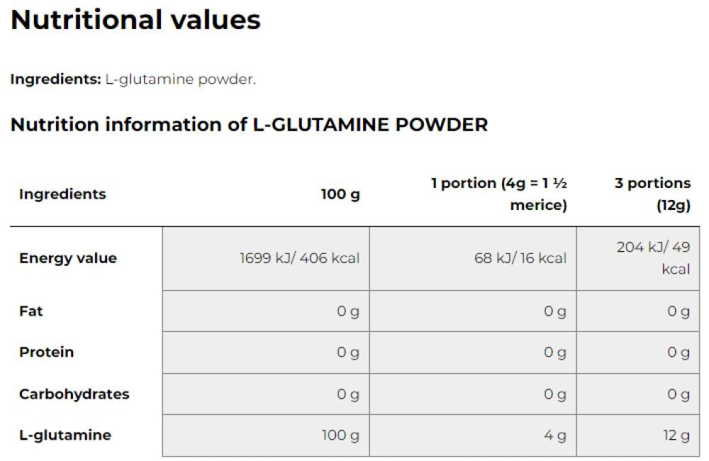 - يزيد ال- جلوتامين من نمو القوة وكتلة العضلات الهزيلة، وله تأثير قوي مضاد للتقويض، ويمنع نشاط الإنزيمات التي تدمر بروتينات العضلات، ويتحول أيضًا إلى الجلوتاثيون ويرفع مستوى هذه المادة.