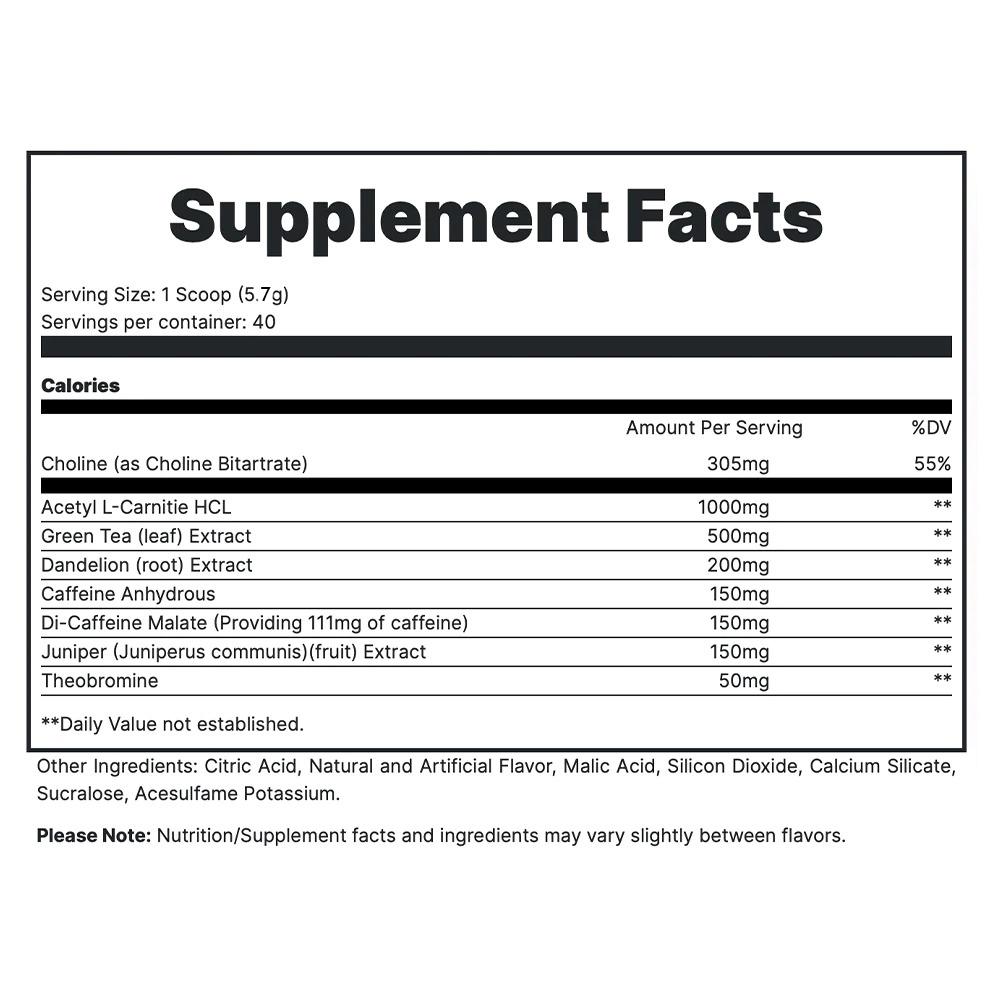 يذوب دهون الجسم مع تحسين الطاقة بشكل كبير حتى في حالة نقص السعرات الحرارية. يتم زيادة التركيز العقلي بشكل عميق. كل مكون سيزيد من سرعة عملية التمثيل الغذائي في الجسم، مما يحرق سعرات حرارية أكثر على مدار اليوم.