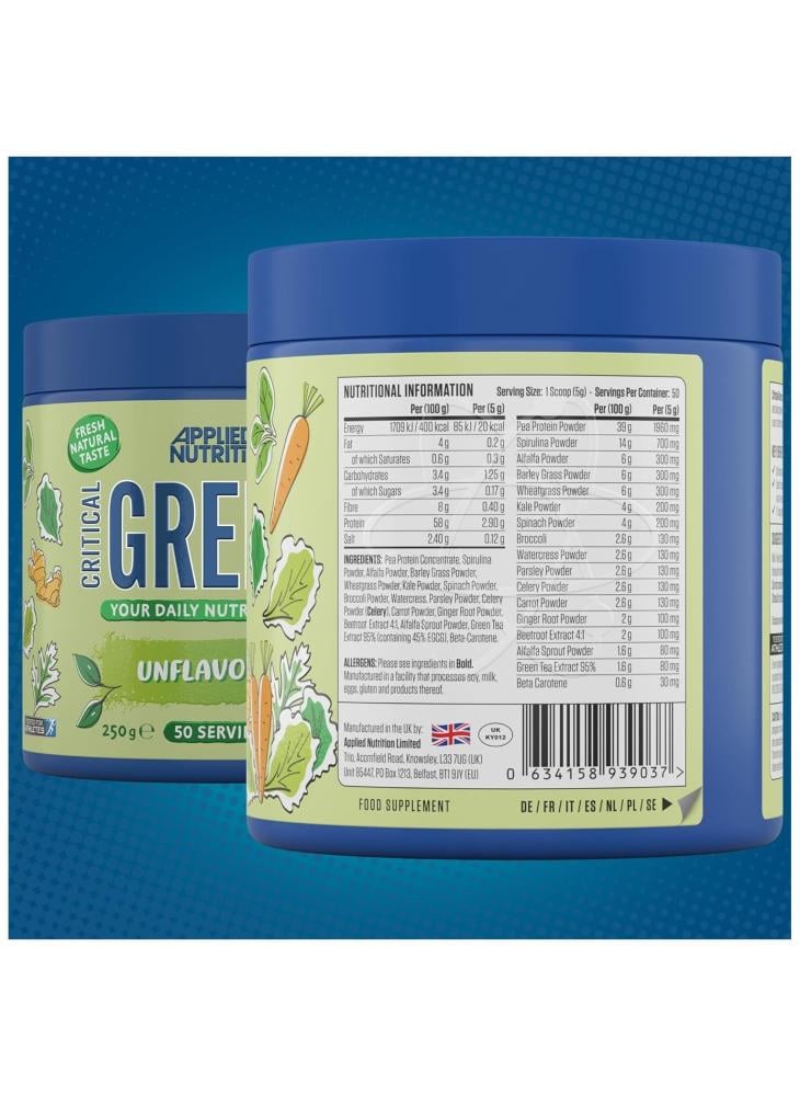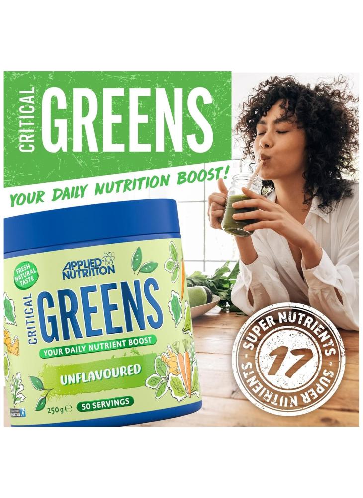 امنح جسمك دفعة غذائية من الطبيعة مع Critical Greens من Applied Nutrition. هذا المسحوق المتكامل يجمع 17 مستخلصًا من أفضل الخضروات والفواكه—من البروكلي والسبانخ إلى الكرفس وقشور القمح—ليرفع مستوى الفيتامينات والمعادن في نظامك اليومي.